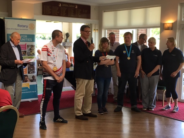 Our charity golf day raised over £4500 for St Albans Special Olympics. The photo shows our President Arthur Woolgar presenting the cheque.